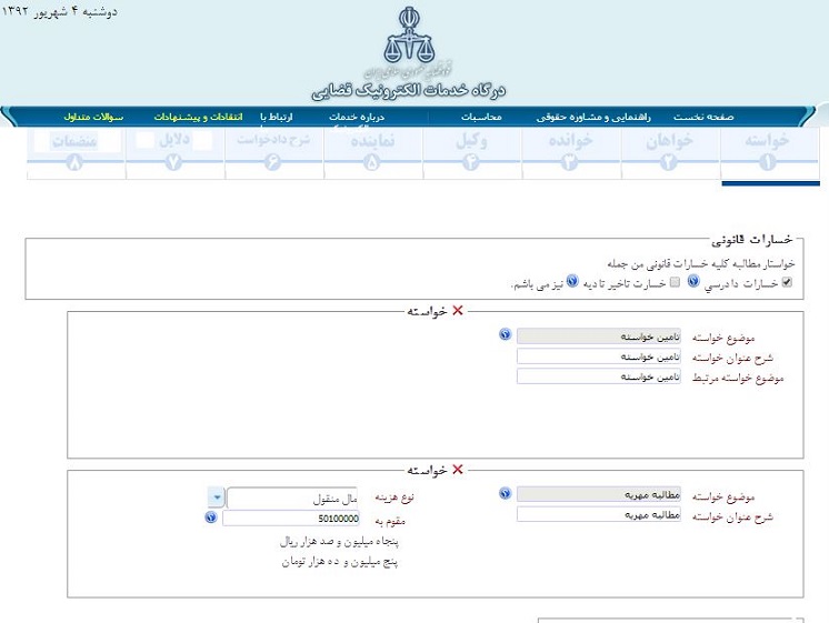 با توجه به راه اندازی سیستم پایانه قوه قضاییه( درگاه خدمات قضایی ) و الزاما پذیرش و ثبت تعدادی دعاوی خانوادگی از این سامانه متاسفانه اشتباه فاحشی در قسمت محاسبات این درگاه وجود دارد که به عنوان بخش اول به این اشتباه محاسبات اشاره می گردد.